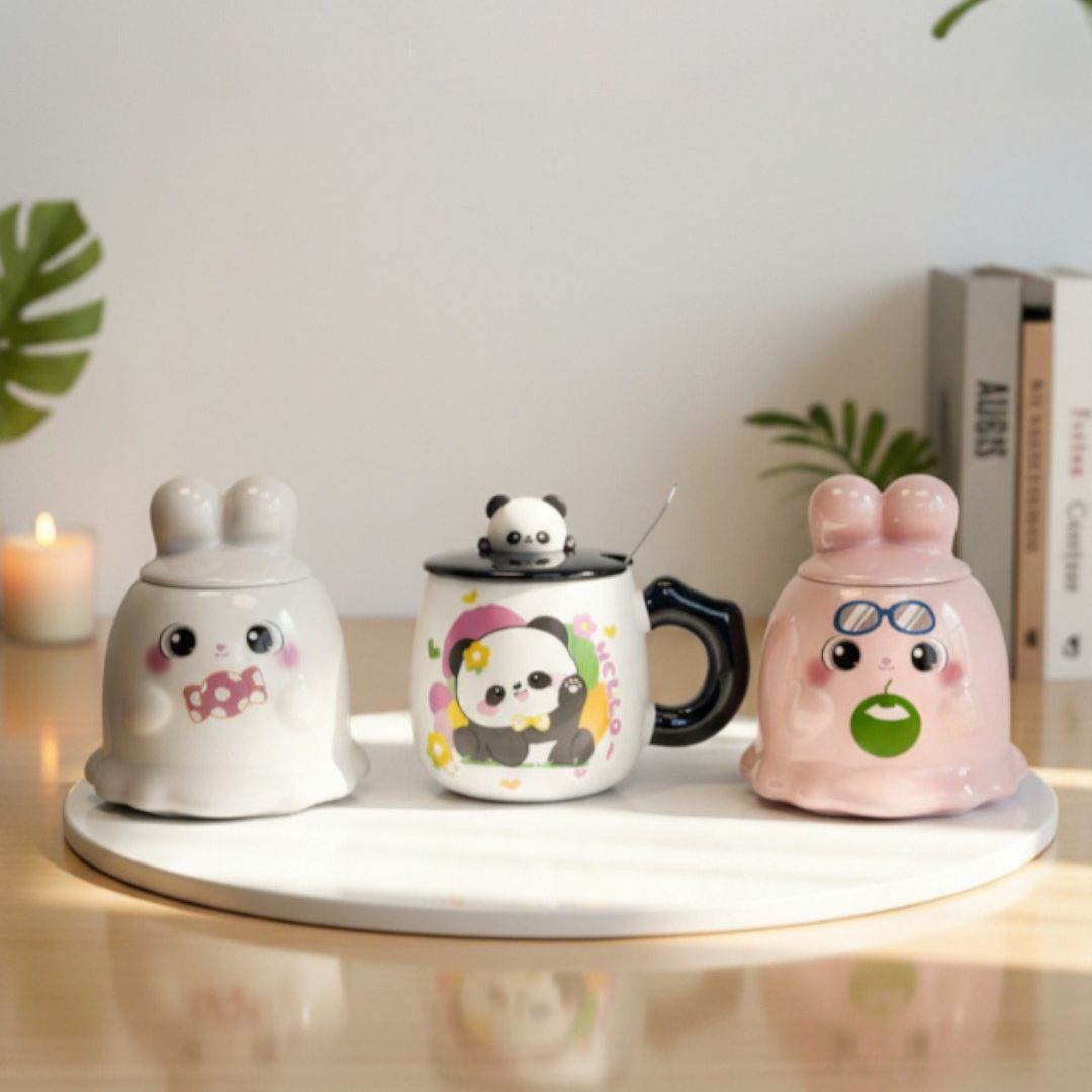 Fortune Panda Ceramic Mug (With Spoon and Lid)