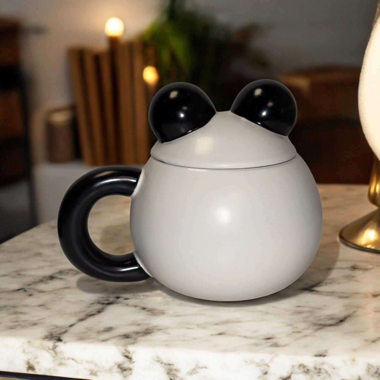 Crafted from high-grade ceramic, it keeps your beverages at the perfect temperature - whether it’s your first morning pour or a midnight matcha. The glossy black handle adds contrast and comfort, while the panda lid keeps your drink warm and your vibe cuter than ever.