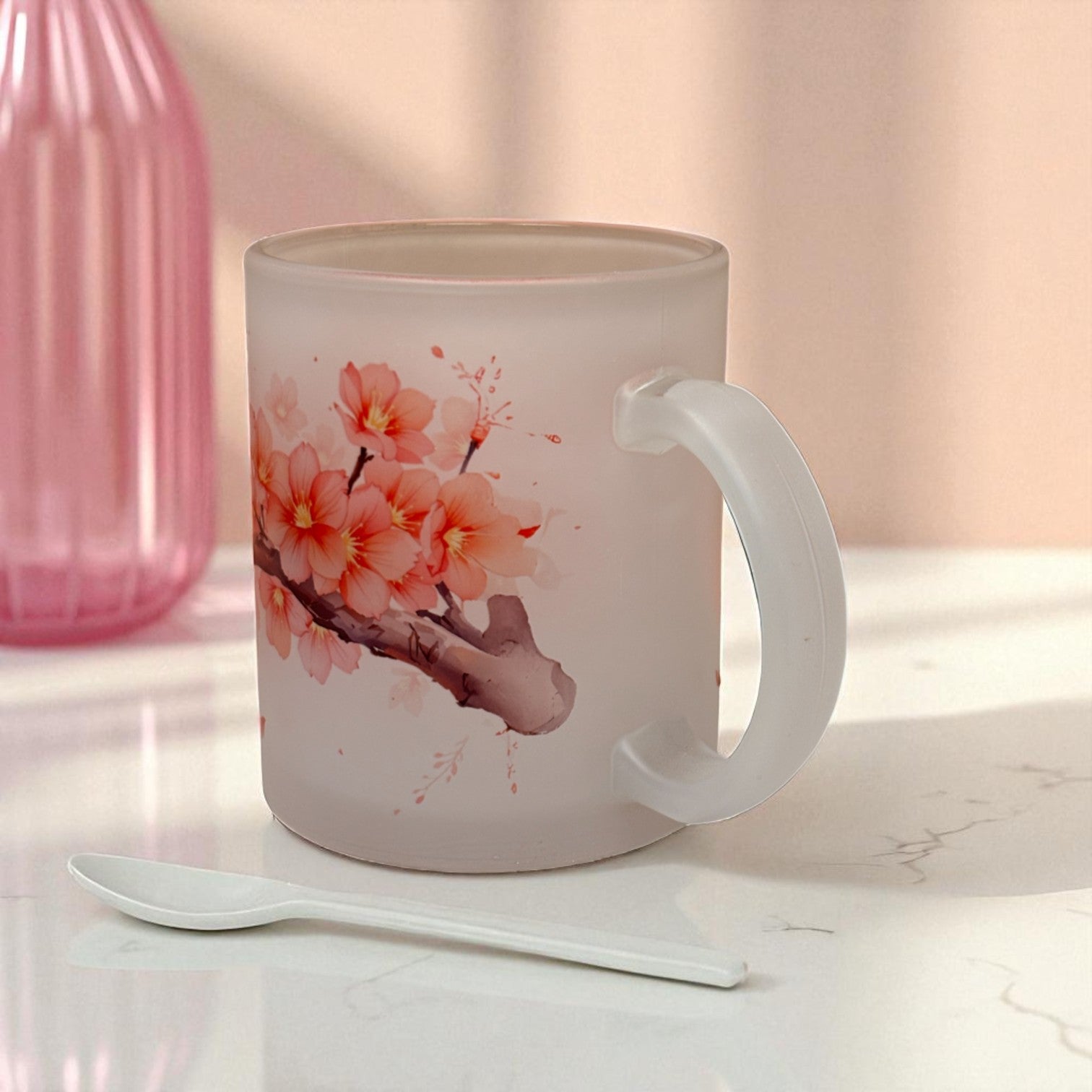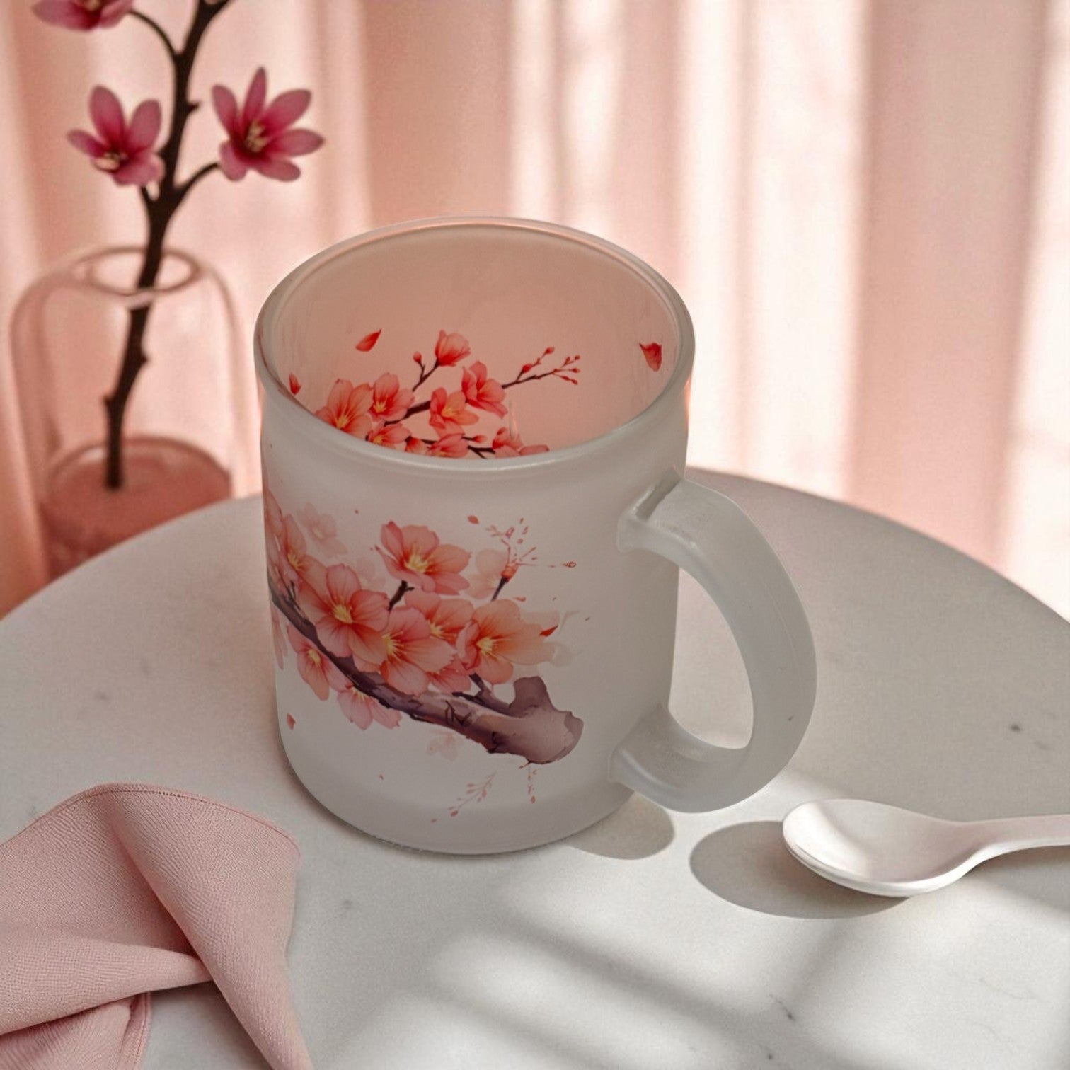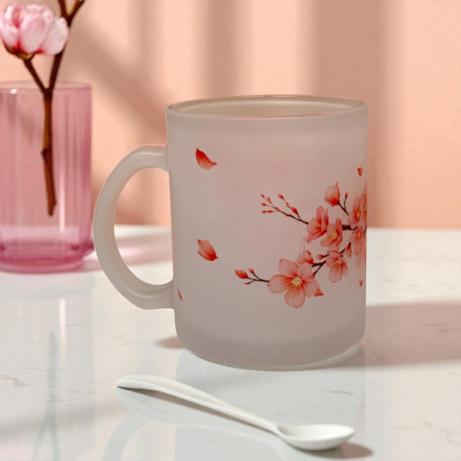 Experience peaceful moments with the Sakura Drift Frosted Glass Mug - a beautifully designed aesthetic cherry blossom mug perfect for tea, coffee, or matcha. Featuring soft pink sakura flowers drifting across frosted glass, it brings a calm, elegant touch to your routine.